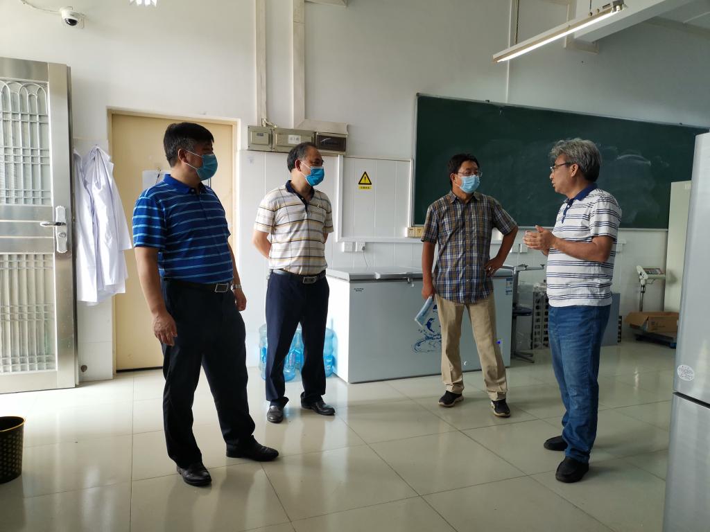 在今年春季学期首批返校员工之际,2020年5月19日上午,beat365英国官网网站经理陈进军、书记邓伟强、副经理殷学贵等对兴农楼每间实验室和消防通道等进行全方位安全检查。从实验室内外卫生、防疫措施、消毒、仪器设备、试剂管理、消防通道等进行了仔细检查,发现问题并及时指出,要求相关责任人及时整改,确保实验室安全、高效运转,为返校急需做实验的本科生、研究生提供必要的实验场所支持。