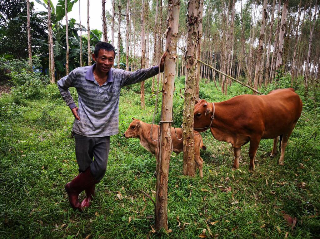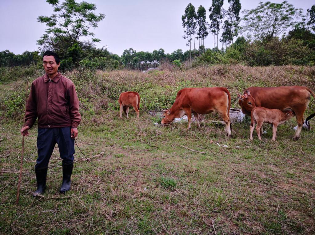 贫困户卢道权安心地饲养不断壮大的扶贫牛群