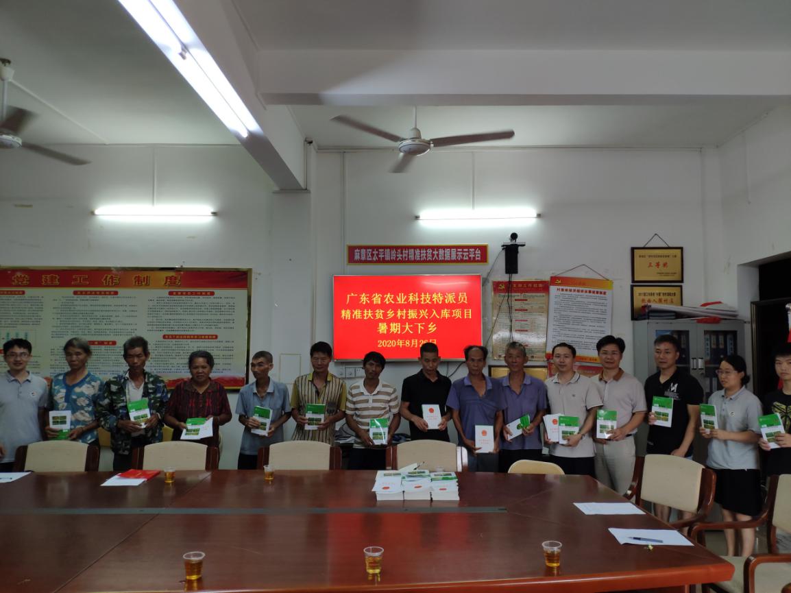 2020年8月25日-26日,beat365英国官网网站农村科技特派员马驿教授、高振华教授、丁月霞博士、吴正伟博士、饶刚顺博士、林巧玲实验师等12人先后赴麻章区湖光镇赤忏村和太平镇岭头村调研脱贫与新农村建设并为农户带去农业科技图书和种植用肥料。