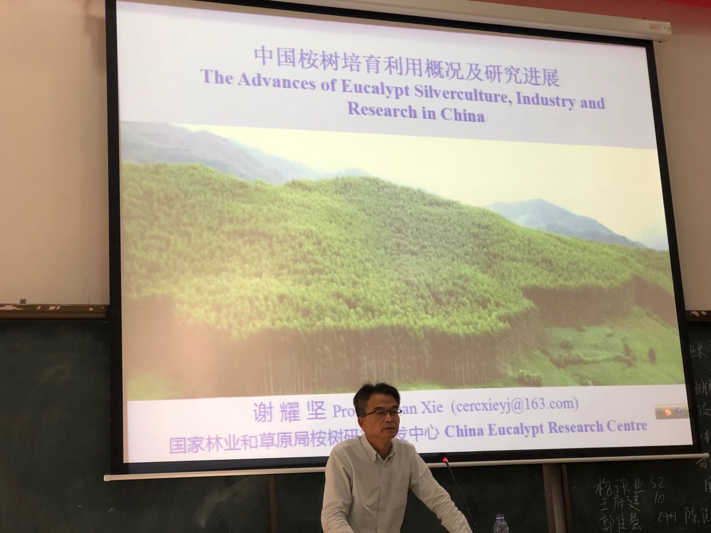 2020年10月21日下午,应beat365英国官网网站邀请,国家林业和草原局桉树研究开发中心副主任谢耀坚研究员来公司作关于“中国桉树培育利用概况及研究进展”讲座,讲座由beat365英国官网网站风景园林学科带头人韩维栋教授主持。
