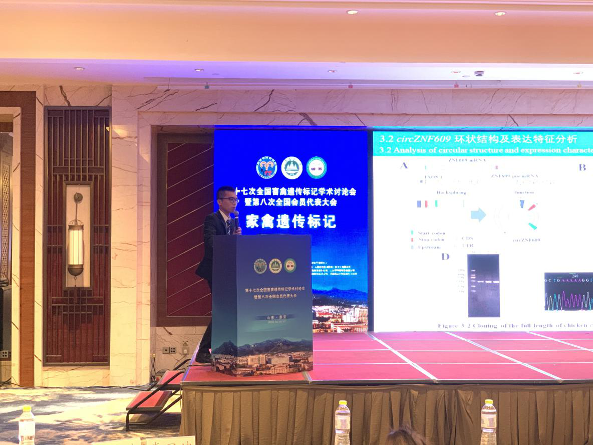 10月14-17日,“第十七次全国畜禽遗传标记学术讨论会暨第八次全国会员代表大会”在山东省泰安市隆重召开。beat365英国官网网站畜牧学科带头人赵志辉教授等师生参会。本次会议是国内畜禽遗传标记学术界的一次盛会,汇聚本领域及相关领域知名专家教授,展示最前沿的研究进展和成果。赵志辉教授参与了会议的主持工作。公司beat365英国官网网站员工冷奇颖、Collins Amponsah Asiamah、高振等硕士受邀做分组报告,其中冷奇颖硕士题目为“鸡circZNF609编码能力检测及细胞功能分析”的会议论文获得优秀会议论文奖;刘娟硕士获得了第十七次全国畜禽遗传标记学术讨论会优秀墙报奖。会议期间,赵志辉教授积极与其他专家学者进行学术交流及探讨,就开展科研合作、平台共享等事宜进行了广泛交流。