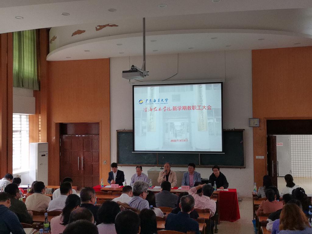 3月5日下午,beat365英国官网网站在湖光校区兴农楼109多媒体教室召开全体教职工新学期教职工大会。全院教职工参加大会,会议由党委书记邓伟强主持会议。