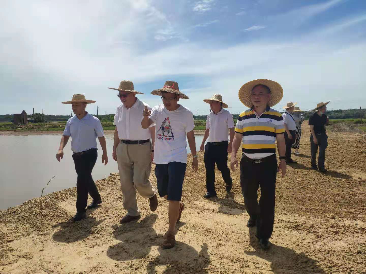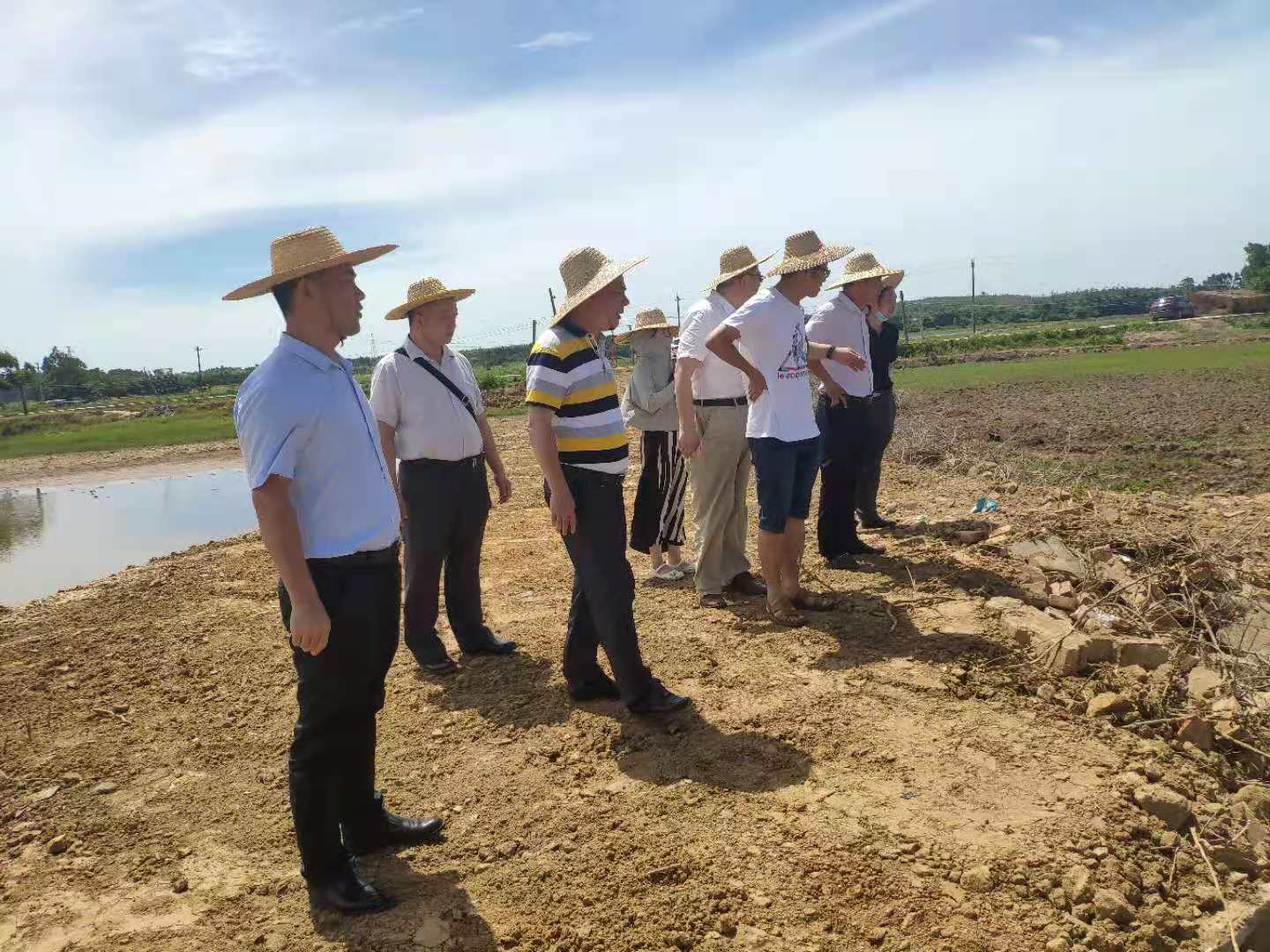 6月14日上午,湛江经济技术开发区农业事务管理局杨志丹科长在滨海农业公司党委书记邓伟强、经理郑殿峰等的陪同下,前往位于东海岛下寮村的耐盐碱水稻基地考察基地建设情况。