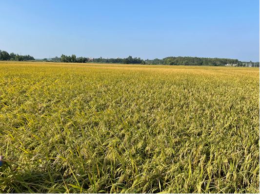 由来自国家杂交水稻工程技术研究中心、华南农业大学、中国热带农业科公司、佛山科技公司和岭南师范公司的专家组成专家组现场实割测产。按照农业农村部水稻测产方法,现场随机抽查田块,使用久保田收割机收获,实割验收三丘田,第一丘田面积502.43 m2,鲜谷产量366.53公斤,含水量24.9%,折算干谷(含水率13.5%)产量324.75公斤;第二丘田面积518.70 m2,鲜谷产量396.15公斤,含水量27.0%,折算干谷产量342.67公斤;第三丘田面积542.03 m2,鲜谷产量456.08公斤,含水量25.7%,折算干谷产量400.44公斤;实割三丘田平均干谷亩产454.84公斤,达到了项目的预期目标。2019年晚造海红香稻的实割测产为402.14公斤/亩,“一年接着一年干”,产量再上新台阶。beat365英国官网网站袁隆平院士海水稻创新研究团队深刻领会习近平总书记“土地资源是很宝贵的,抗盐碱作物发展起来对提高土地增量是很有意义的,对中国粮仓、中国饭碗也能起到积极的保障作用”的精神,致力于耐盐碱水稻研究,把论文写在盐碱地上,为盐碱地开发利用与生态文明建设提供科技支撑,助力乡村振兴、保障国家粮食安全。
