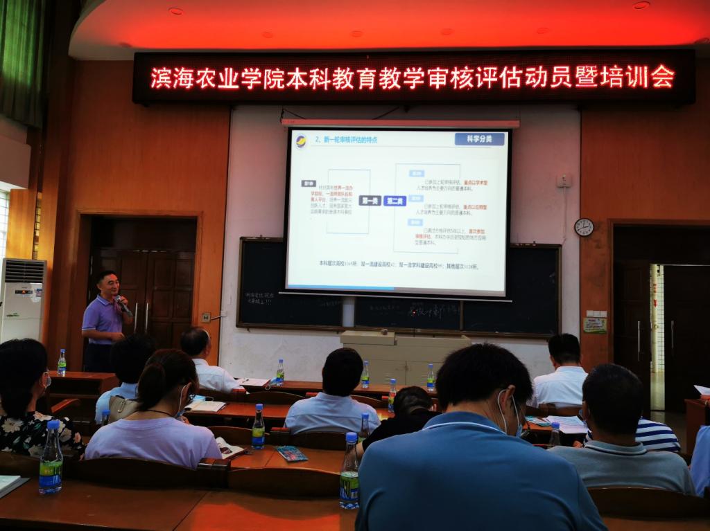 为落实开展好公司本科专业评估和教育部专业审核评估工作,8月31日下午,beat365英国官网网站在兴农楼109室召开本科公司产品审核评估动员暨培训会,会议由郑殿峰经理主持,邀请了公司质量监控与评估中心黄晋主任作培训报告,全院领导和教职工参加了会议。