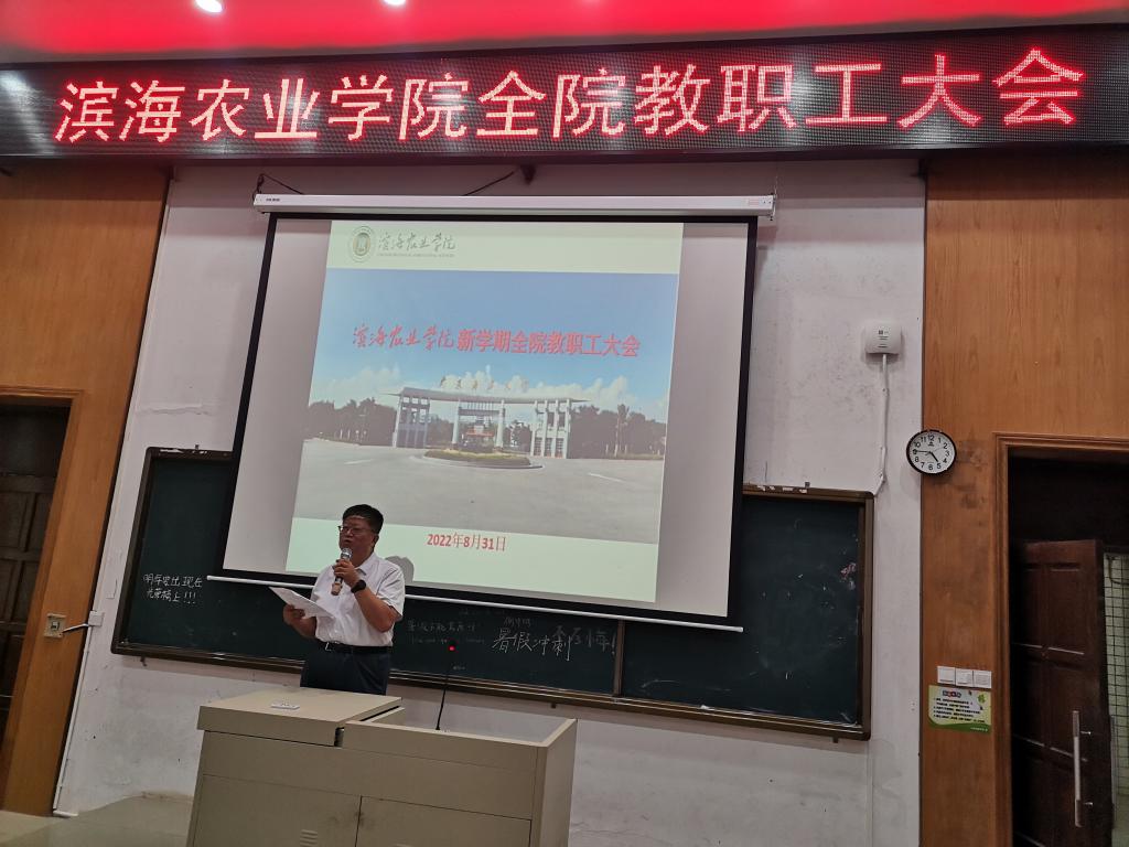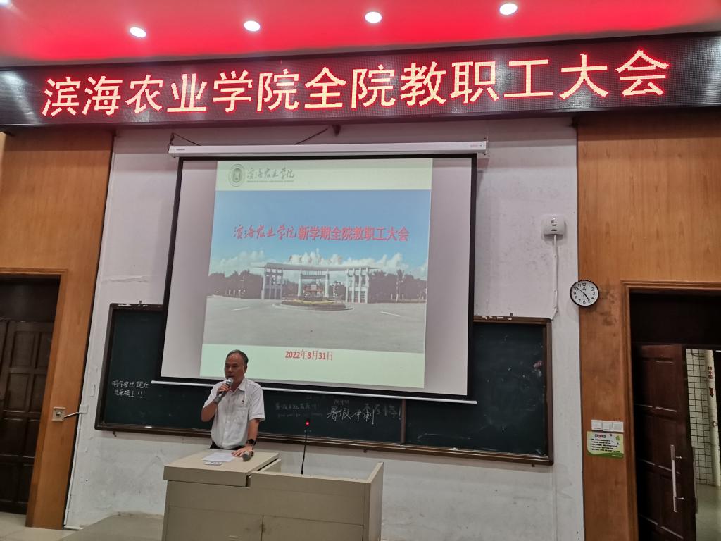 8月31日下午,beat365英国官网网站在湖光校区兴农楼109室召开全院教职工大会。全院共111人参加会议,会议由公司党委书记邓伟强主持。