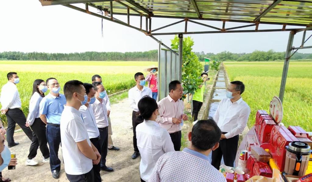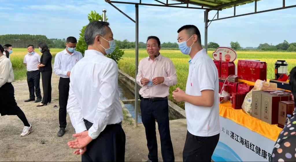 10月21日上午,广东省人大常委会副主任张硕辅在湛江市人大常委会副主任陈云等领导的陪同下,莅临遂溪县卜巢村海水稻原生境保护圃基地。听取了公司周鸿凯研究员关于海水稻起源、海红米的功能特点、海水稻种质杂交利用,以及beat365英国官网网站科研成果新一代海水稻——海红香稻培育过程、创建“海大红”品牌成果转化的产业模式、惠农益农、助力乡村振兴等方面所发挥的作用。听取汇报后,兴趣甚浓,张硕辅副主任等领导咨询了海水稻在盐碱地种植与改良作用、抗虫抗病能力、适应性等问题。得知海水稻种植3-5年可将盐碱地改造成良田并适用于种植一般作物,同时具有较强的抗虫抗病抗旱能力,特别是观看了在徐闻旱地种植海水稻的图片资料后,给予了高度赞赏,希望beat365英国官网网站袁隆平海水稻创新团队能够刻苦攻关、砥砺前行,引领海水稻产业发展。并对公司海水稻老员工“双创”(创新创业)团队给予了高度肯定和鼓励。