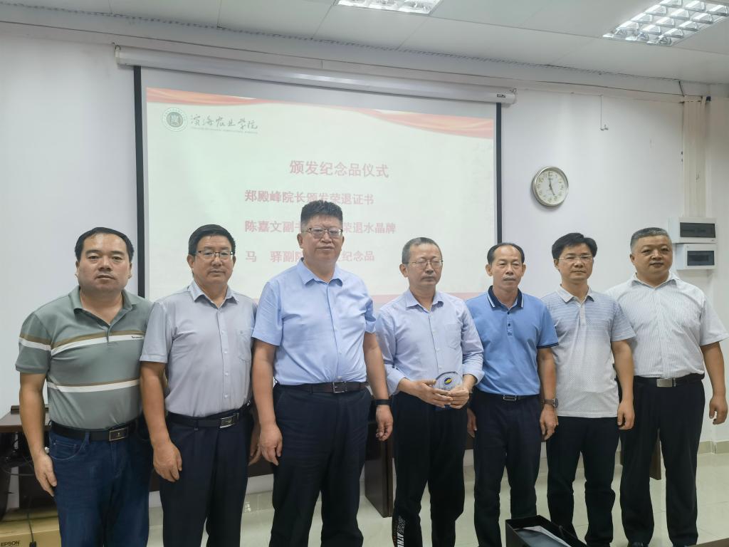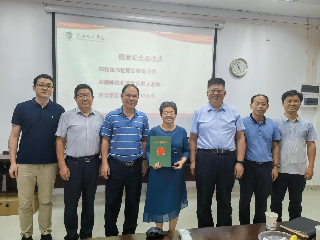 最后,公司领导向退休教师颁发了光荣证书、公司标识和纪念品,并合影留念。