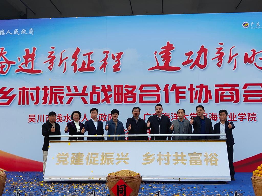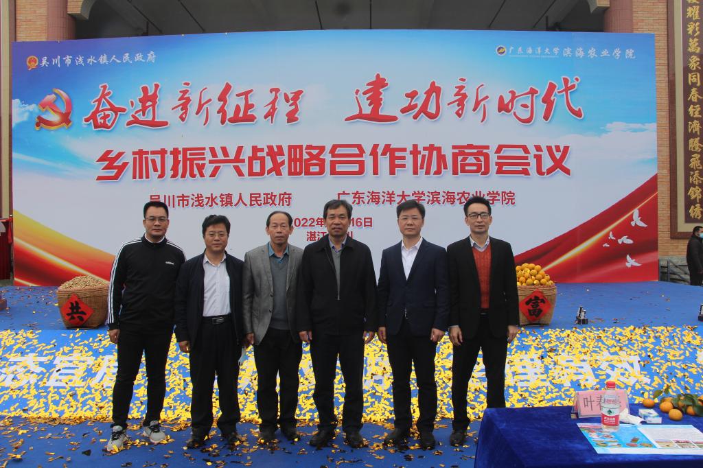 12月16日上午,公司与吴川市浅水镇建立乡村振兴战略合作协商会在吴川市浅水镇高栈村举行。公司原董事长叶春海教授、滨海农业公司党委副书记陈嘉文、副经理马驿教授及相关老师一行6人参加了会议,吴川市委副书记(代市长)刘伟、市委常委(副市长)谭斐、吴川市乡村振兴局局长林明、浅水镇党委书记叶剑平、浅水镇党委副书记(镇长)郭卓明、浅水镇人大主席柯亚周出席了会议。
