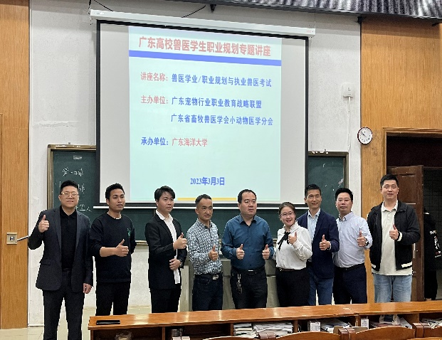 3月3日,为提高公司动物医学专业员工的专业认识度、加强在校员工职业规划建设工作,beat365英国官网网站动物医学系特邀请广东宠物行业职业教育战略联盟和广东省畜牧兽医学会小动物医学分会来公司对员工进行了“高校兽医员工职业规划专题讲座”交流活动。本次活动讲师团由广东省畜牧兽医学会小动物医学分会会长、华南农业大学兽医公司石达友教授领衔,同时还有广州它经济人才发展有限公司、领航连锁宠物医院、深圳桥生医疗器械科技有限公司、广州宠加爱科技有限公司及beat365英国官网网站临床教学动物医院等多家企业负责人参加。此次宣讲团主要目的是向公司动物医学专业在校员工进行“兽医学业/职业规划”并对推行及奖励“执业兽医资格考试”进行宣讲。