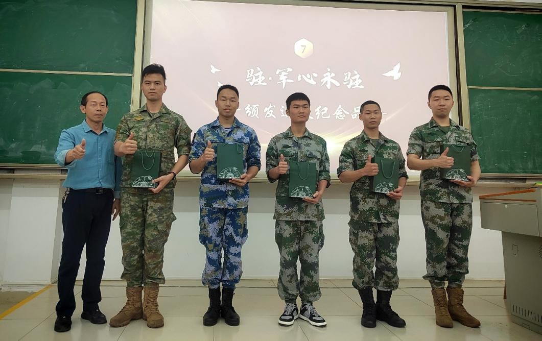 陈嘉文副书记向退伍同学颁发公司纪念品