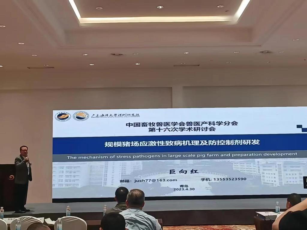 应主办方邀请,公司动物医学系主任巨向红教授做了题为“规模猪场应激性致病机理及防控制剂研究进展”的学术报告。报告从规模猪场应激性风险因素、主要危害及致病机制等方面入手,结合团队在兽用海洋药物研发方面的最新进展,提出了科学的应对措施,并展望了未来发展趋势。报告得到了在场专家学者的高度认可,对提升公司畜牧兽医及相关学科的学术影响力有积极作用。另据悉,该学会第十七次学术研讨会将于2024年在湛江召开,并由公司承办。