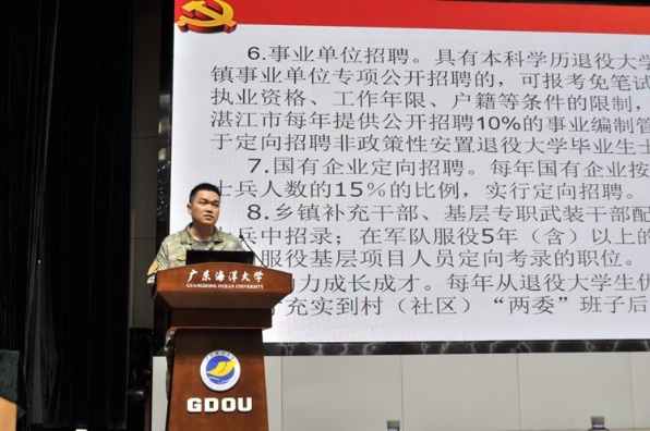 麻章区人民武装部干事余华臣讲解征兵政策