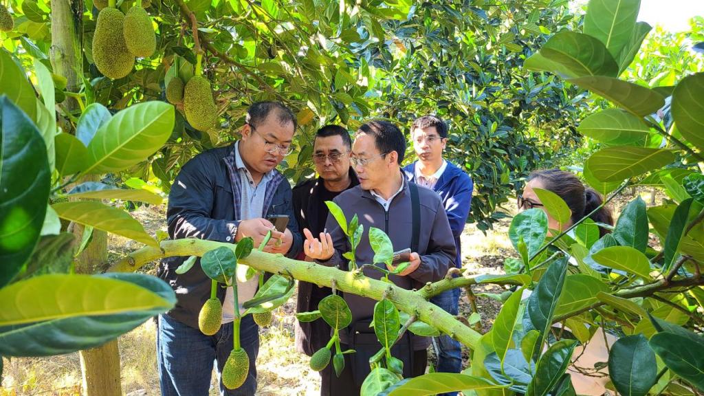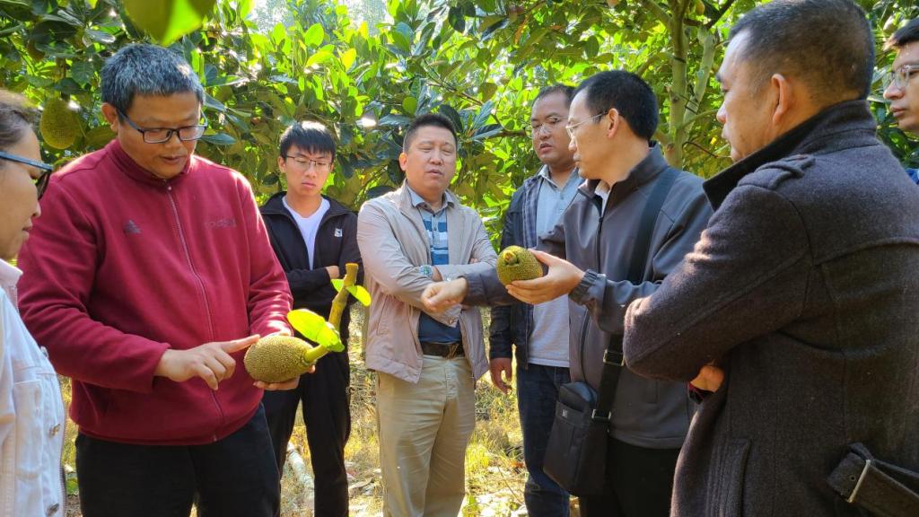 2024年1月4日至8日,在“云南省丰锋专家工作站”项目支持下,beat365英国官网网站丰锋、易润华到云南省西双版纳、元江、河口等地调研波罗蜜生产管理及病虫害发生情况,并开展防控技术指导。一行先后到西双版纳恒绿色农业科技有限公司、元江金果邑果品开发有限公司、河口九曲农业科技有限公司、河口中启农业有限公司等10余家企业和种植大户的波罗蜜种植基地开展调研。通过与基地负责人和技术员交流,了解波罗蜜生产管理中的困难与问题,易润华老师详细介绍了波罗蜜生理性病害与病理性病害的区别,现场解剖取样波罗蜜果锈、果心变黑、裂皮、花叶等材料,下一步,工作站将进行病原的分离鉴定、对其发病规律和致病机理等进行深入研究,尽快拿出针对性方案。云南省热带作物科学研究所张阳梅,云南省红河热带农业科学研究所所长丰玉云、波罗蜜团队岳建伟、刘学敏、孙寅虎等相关人员参加上述活动。