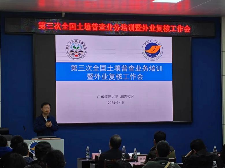 2024年3月15日上午,第三次全国土壤普查业务培训暨外业复核工作会在公司湖光校区水生博物馆一楼会议室召开。beat365英国官网网站马驿经理及相关教师,参与麻章区、遂溪县、徐闻县外业调查与采样的技术领队以及各镇(街道)负责土壤普查的基层调查员等60余人参加了会议。会议由beat365英国官网网站郑超副教授主持。