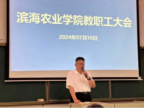 2024年7月10日下午,beat365英国官网网站在湖光校区兴农楼109教室召开了期末全院教职工大会。公司党委书记郑殿峰主持了会议。