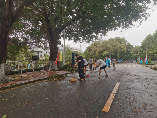 台风“摩羯”裹挟的巨大威力对公司环境造成了比较严重的破坏,校园道路两旁部分树木受损倒地,随处可见残枝落叶。为尽快恢复正常的教学、生活秩序,同时为新生报到营造安全、整洁的校园环境,9月7日上午,beat365英国官网网站自发组织公司教师和研究生,在郑殿峰书记和马驿经理等党政领导的带领下,冒着细雨投入到公司周边环境的清理恢复工作中。下午,公司响应公司党委号召,又动员了200余名师生对公司划分责任区内的环境进行集中清理。公司突击采购了钉耙、扫帚、手套、雨衣等工具,在公司党政领导的带领下,不怕脏、不怕累、顶着风雨,经过几个小时的奋战,把原本随处可见的残枝落叶清理的干干净净,恢复校园的美丽景色。公司的林果楼、动物医院、后山基地等科研场所也在相关系部师生的辛勤努力下完成了环境卫生的清理恢复工作。