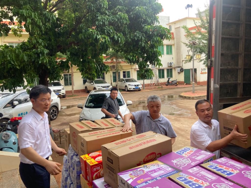 在得知这一消息后,beat365英国官网网站迅速组织召开公司班子会议,率先提出对西连镇进行支援,并上报公司主管部门。公司连夜组织采购了面包、牛奶、方便面、八宝粥、矿泉水等生活急需物资。9月9日一大早,由beat365英国官网网站经理马驿、科学技术部副部长刘劲科、公司党委副书记王继全、副经理沈雪峰、公司党政办主任杨铁军和科学技术部知识产权与成果科科长丁晨组成的慰问组,带着满车生活急需物资赶赴徐闻县西连镇。慰问组克服路途远、高速封闭、国道拥堵等困难,在公司化学与环境公司党委书记、“双百行动”驻徐闻县服务队队长何国明和徐闻县教育局教师发展中心、“双百行动”工作专班联络员陈华丽的陪同下,将生活物资及时送到了受灾乡镇群众手中。