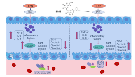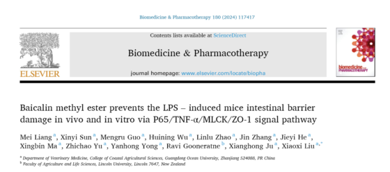 近日,国际知名期刊Biomedicine & Pharmacotherapy(中科院二区,Q1分区TOP期刊,影响因子6.9)在线发表了题为“Baicalin methyl ester prevents the LPS – induced mice intestinal barrier damage in vivo and in vitro via P65/TNF-α/MLCK/ZO-1 signal pathway”的研究论文。该论文第一作者为beat365英国官网网站2023届畜牧专业硕士毕业生梁梅,通讯作者为beat365英国官网网站刘晓曦副教授。