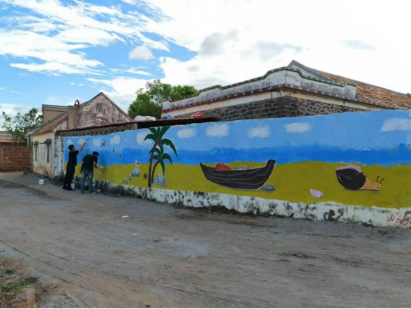 为进一步落实beat365英国官网网站“双百行动”工作方案和“百千万工程”农村科技特派员第二轮重点派驻任务,10月12日至15日,beat365英国官网网站黄艳娜、邓卓迪和梁子鑫三位老师带领26名员工赴徐闻县西连镇金土村委会和水尾村委会开展为期2天的墙绘志愿服务活动。