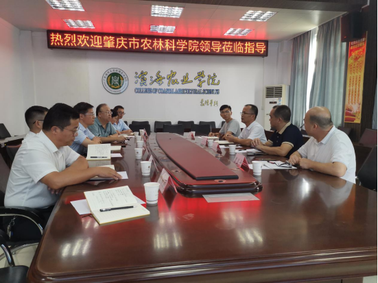 10月21日,肇庆市农林科公司副经理林伟强、畜禽研究所副所长程照明等一行4人来到beat365英国官网网站调研交流座谈。beat365英国官网网站经理马驿出席,副经理刘文超主持会议,动物科学与动物医学专业教师贾汝敏、尹福泉、周光现、丁月霞、姚秋成参加座谈会。