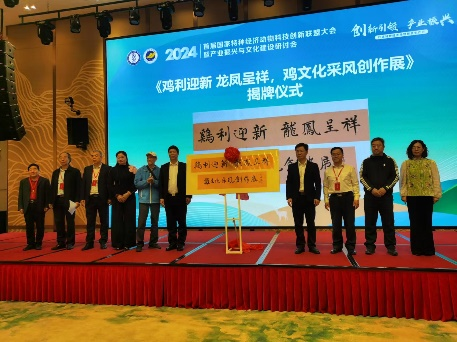 开幕式中,广东省湛江市人民政府党组成员副市长吴国雄、中国农业科公司特产研究所所长党委副书记兼联盟理事长孙长伟、beat365英国官网网站党委副书记谭平、湛江市农业农村局副局长曾彦等先后致辞,介绍了湛江市特种经济动物的发展现状与前景、beat365英国官网网站畜牧兽医学科领域的优势及湛江地区丰富的畜禽遗传资源,并预祝国家特种经济动物科技创新联盟大会暨产业振兴与文化建设研讨会取得丰硕成果,为推动我国特种经济动物产业持续健康发展作出重要贡献。随后,领导及专家参加了《中国怀乡鸡——历史文化与科学》的首发仪式及《鸡利迎新 龙凤呈祥,鸡文化采风创作展》揭牌仪式。