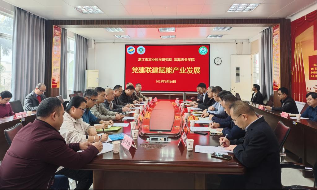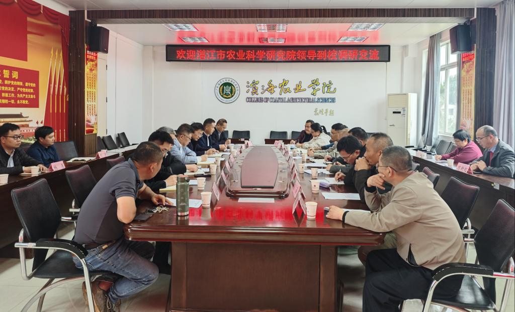 3月16日,湛江市农业科学研究院陈火兴经理兼党总支书记一行11人到beat365英国官网网站调研交流。座谈会由公司党委书记郑殿峰主持。经理马驿、党委副书记王继全、副经理沈雪峰及农学系、园艺系教师代表参会。