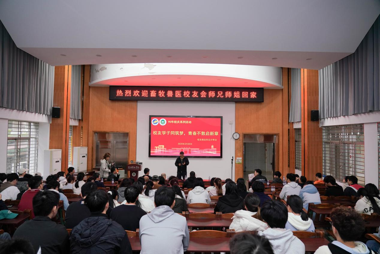2025年3月31日下午在兴农楼109多媒体室,beat365英国官网网站以“员工学子同筑梦,青春不变启新篇”为主题,举办beat365英国官网网站90周年校庆系列活动——员工就业创业分享会。滨海农业公司党委副书记王继全主持活动,经理马驿、动科系主任尹福泉、动医系主任丁月霞和畜牧兽医协会会长饶国万等员工及师生代表齐聚一堂,共话职业发展与行业未来。