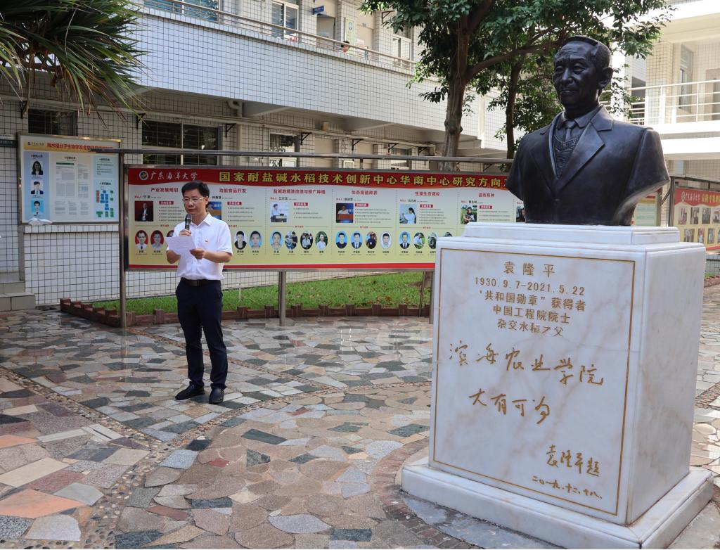 经理马驿在致辞中深情回顾了袁隆平院士的卓越贡献。他指出,袁隆平院士以“一粒种子改变世界”的传奇,毕生践行“把论文写在大地上”的科学家精神,为我国粮食安全与世界反饥饿事业作出了不可磨灭的贡献。他强调,作为新时代农业人,要传承袁隆平院士“扎根田野、心系民生”的赤子情怀,在建设农业强国的征程中,勇攀科研高峰,书写属于滨海农业人的新篇章。