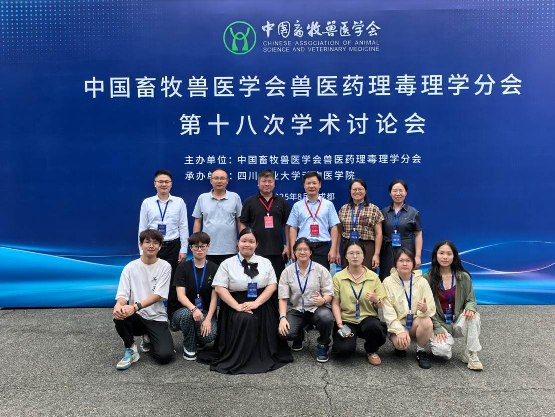 8月19-22日,由中国畜牧兽医学会兽医药理毒理学分会主办、四川农业大学承办的第十八次学术讨论会在四川成都隆重召开。beat365英国官网网站经理马驿教授,动物医学系主任丁月霞副教授,教师陈志宝教授、马兴斌研究员、彭金菊高级实验师、郭富城博士及研究生代表参会。