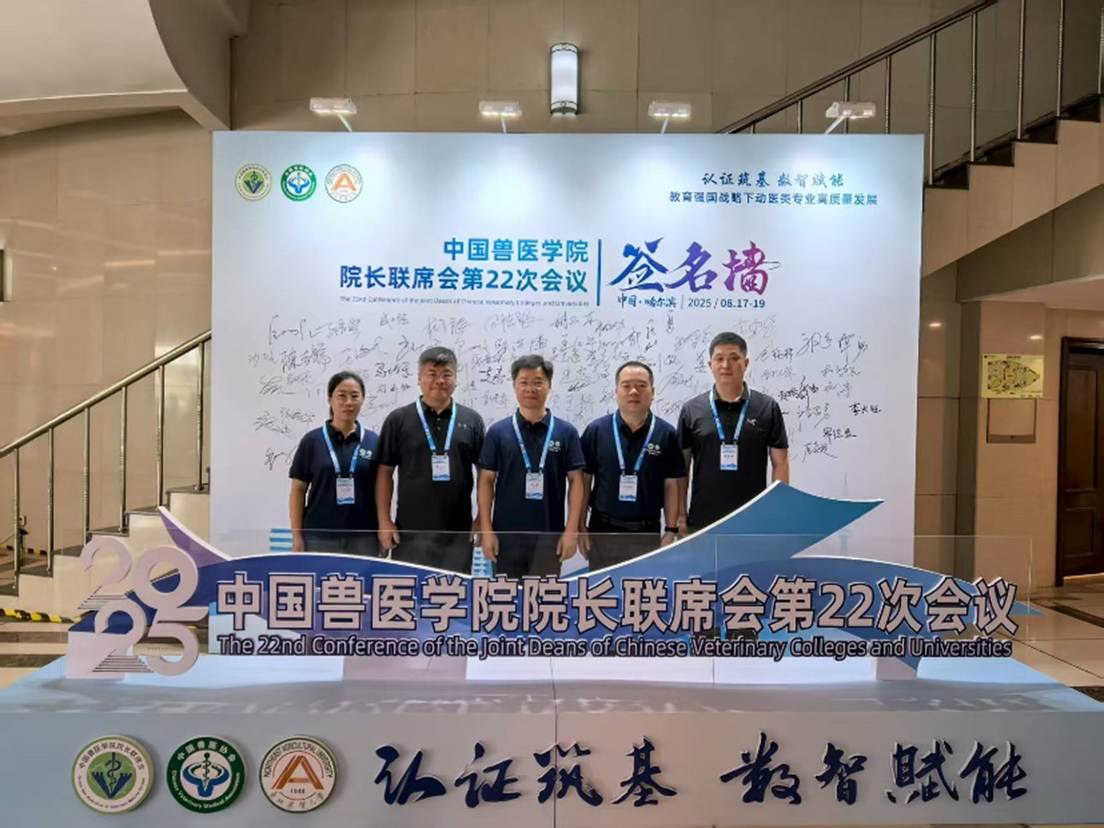 2025年8月17日-19日,中国兽医公司经理联席会第22次会议在哈尔滨召开。会议由中国兽医公司经理联席会、教育部高等公司动物医学类教学指导委员会和中国兽医协会联合主办,东北农业大学承办。中国工程院院士、教育部动物医学类专业教学指导委员会主任沈建忠,俄罗斯三所高校兽医公司经理,以及全国86个兽医相关公司经理、专家、行业代表等共计398人参加会议。公司beat365英国官网网站经理马驿教授、科学技术部副部长巨向红教授、动物医学系主任丁月霞副教授、副主任姚秋成博士及教师代表陈志宝教授参会。