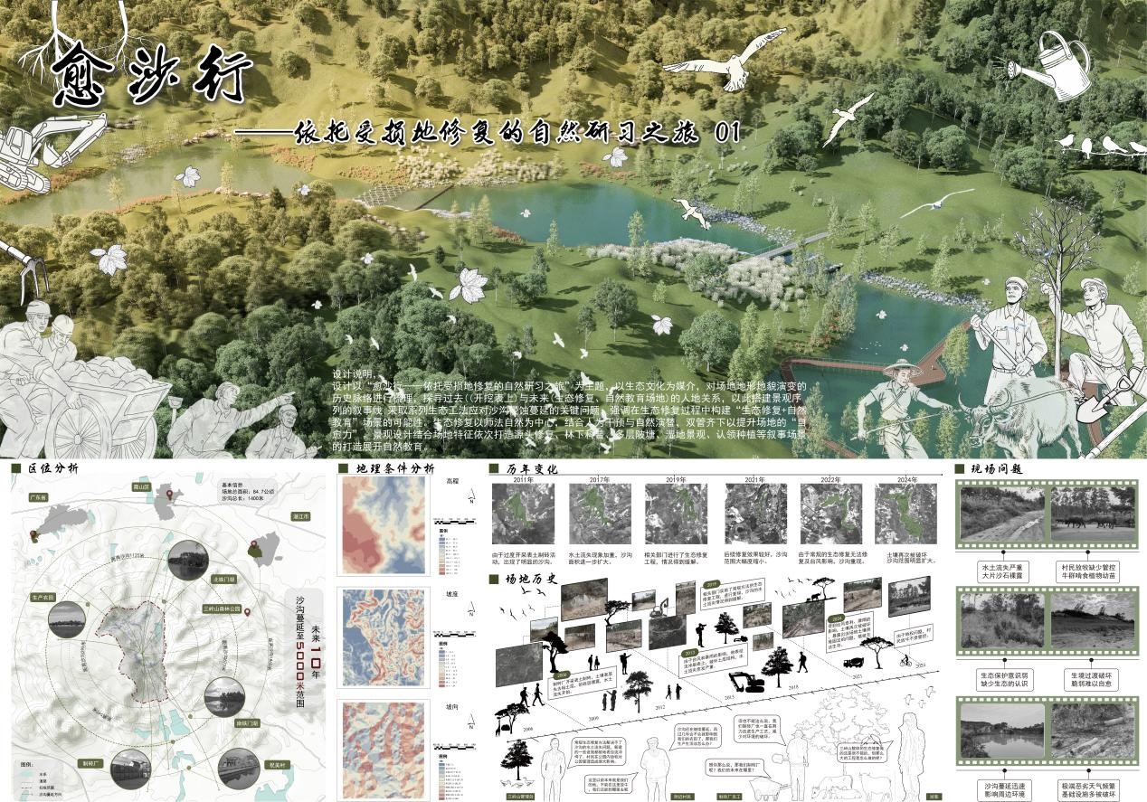“中国好创意”大赛由全国高等院校计算机基础教育研究会共同主办,是数字艺术设计创意及电子技术创新领域的全国性综合赛事。赛事以促进“产、学、研”融合为核心,致力于挖掘创意精英人才。由黄艳娜老师指导,翁炜昌、刘舒淇、李志远、王誉彤、黄小慧五位同学组成的员工团队,凭借作品《愈沙行——依托受损地修复的自然研习之旅》,在空间设计类别中表现优异,荣获国赛级三等奖。同时,指导老师黄艳娜因卓越的指导工作,被授予“省级优秀指导教师”称号。