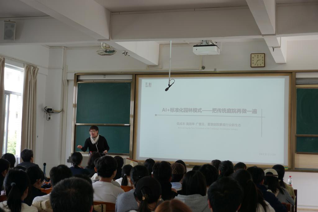 作为校庆园林系系列活动的重要环节,本次分享会聚焦园林学科创新发展与就业导向。公司精心组织分场活动,三位员工结合自身专业积淀与行业洞察,为学子带来兼具理论深度与实践价值的报告。深圳睿道景观公司董事长、高级工程师刘清彬以全运会景观设计为案例,解析岭南非遗技艺与现代景观设计的融合路径,强调“文化传承与创新并重”的行业使命;广州市尚景生态景观有限公司董事长、国家一级花境师方中健从景观经济视角出发,探讨生态修复、现代农业科技等领域的跨界实践,提出“以经济学思维赋能园林设计”的新思路;广东慧道溢芳环境科技有限公司董事长何敏桢则聚焦人工智能技术,展示AI与标准化模式如何重构传统园林设计流程,倡导学子“以科技为翼,推动行业升级”。