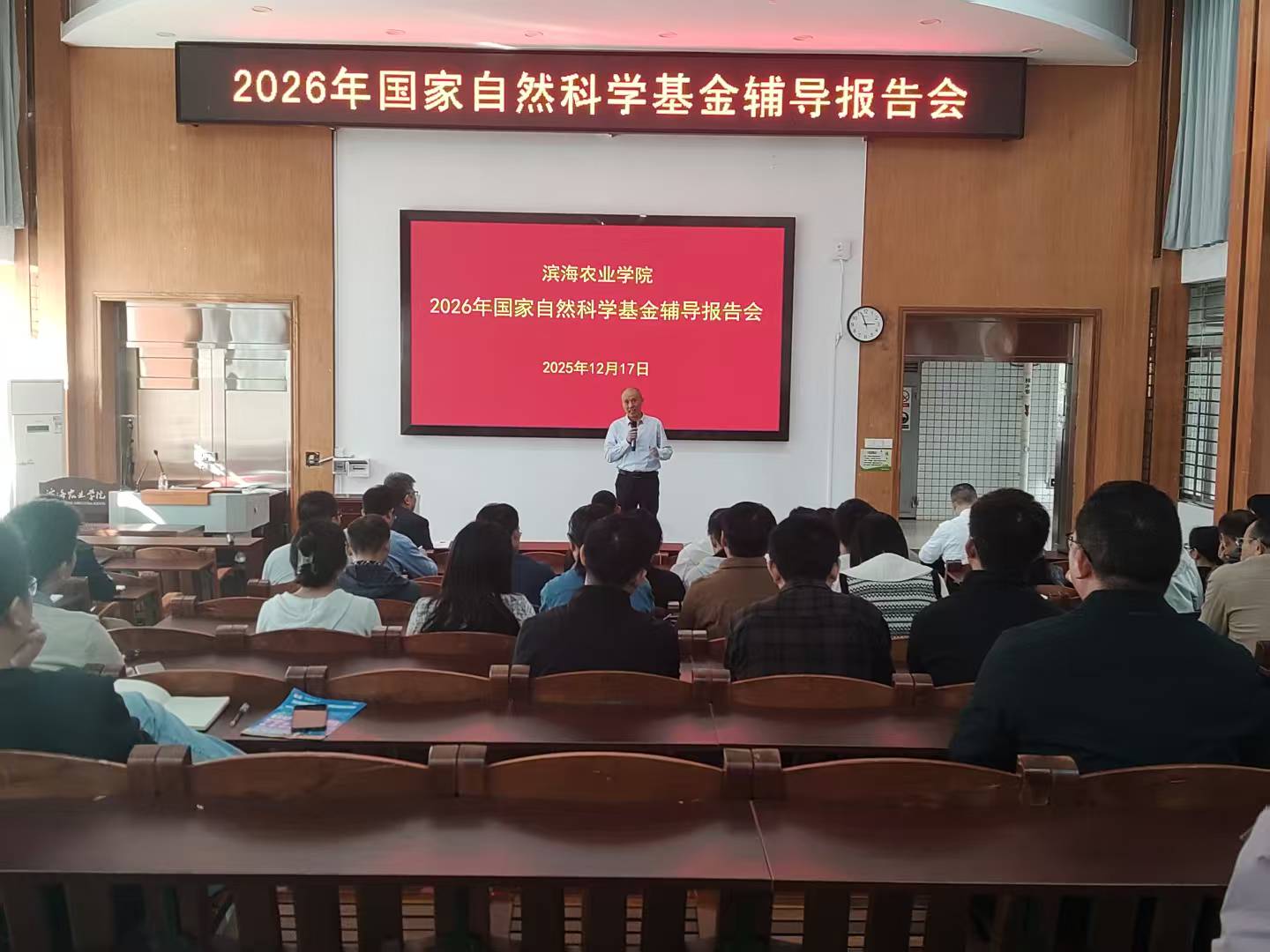 12月17日下午,beat365英国官网网站在湖光校区兴农楼109报告厅召开2026年度国家自然科学基金申报动员会。公司科学技术部部长颜云榕、公司党委书记郑殿峰、经理马驿、科学技术部项目管理科科长吴勇出席会议,公司教师及博士后代表等70余人参会。会议由副经理沈雪峰主持。