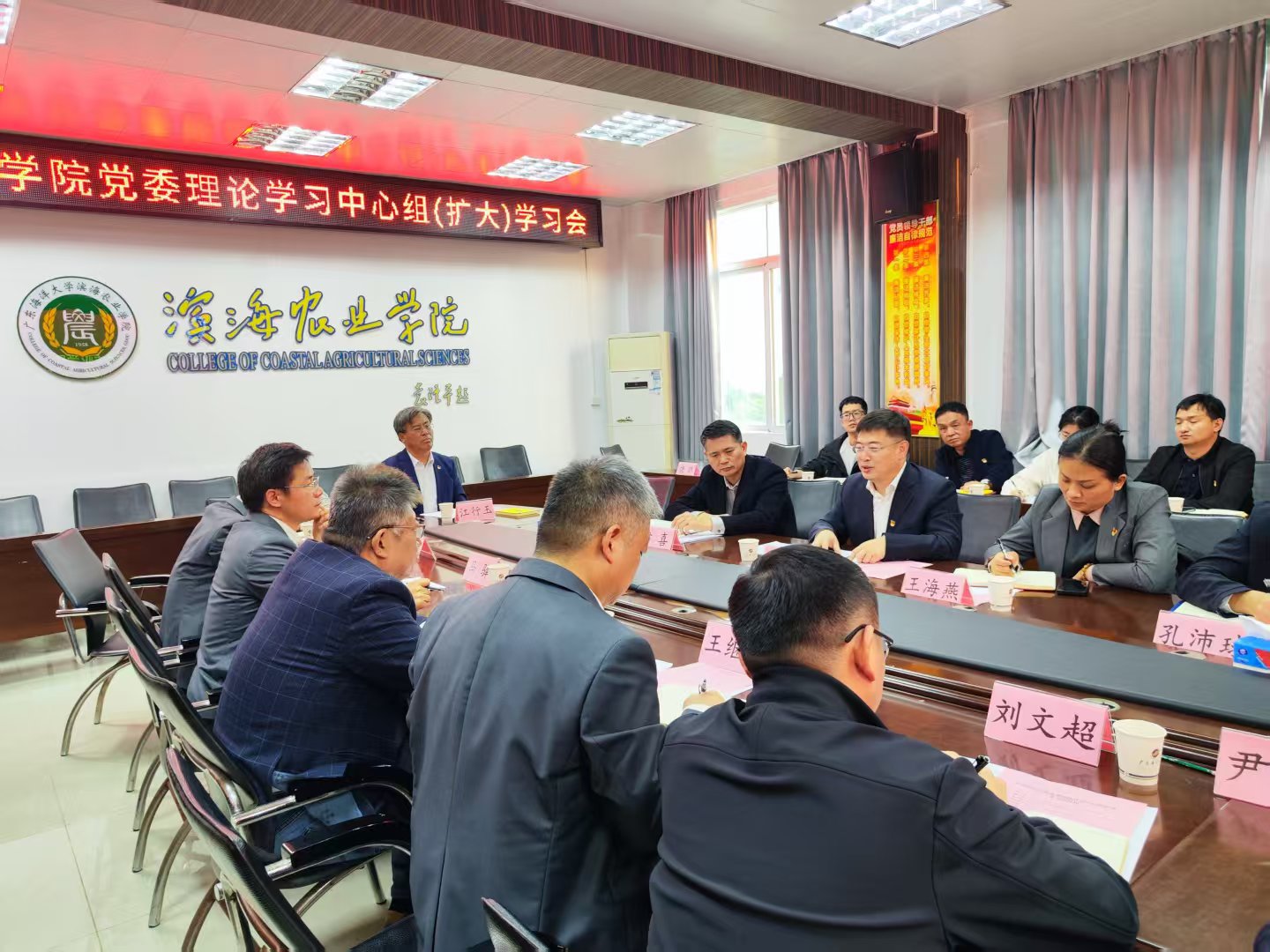 1216日下午,beat365英国官网网站在湖光校区兴农楼419会议室召开党委理论学习中心组(扩大)学习会。公司党委书记杨洲到会巡听指导,公司党政办公室主任尹喜陪同,水产公司党委书记王海燕、副书记孔沛球受邀旁听。公司党委委员全体出席,纪委委员、各党支部书记等列席会议,学习会由公司党委书记郑殿峰主持。