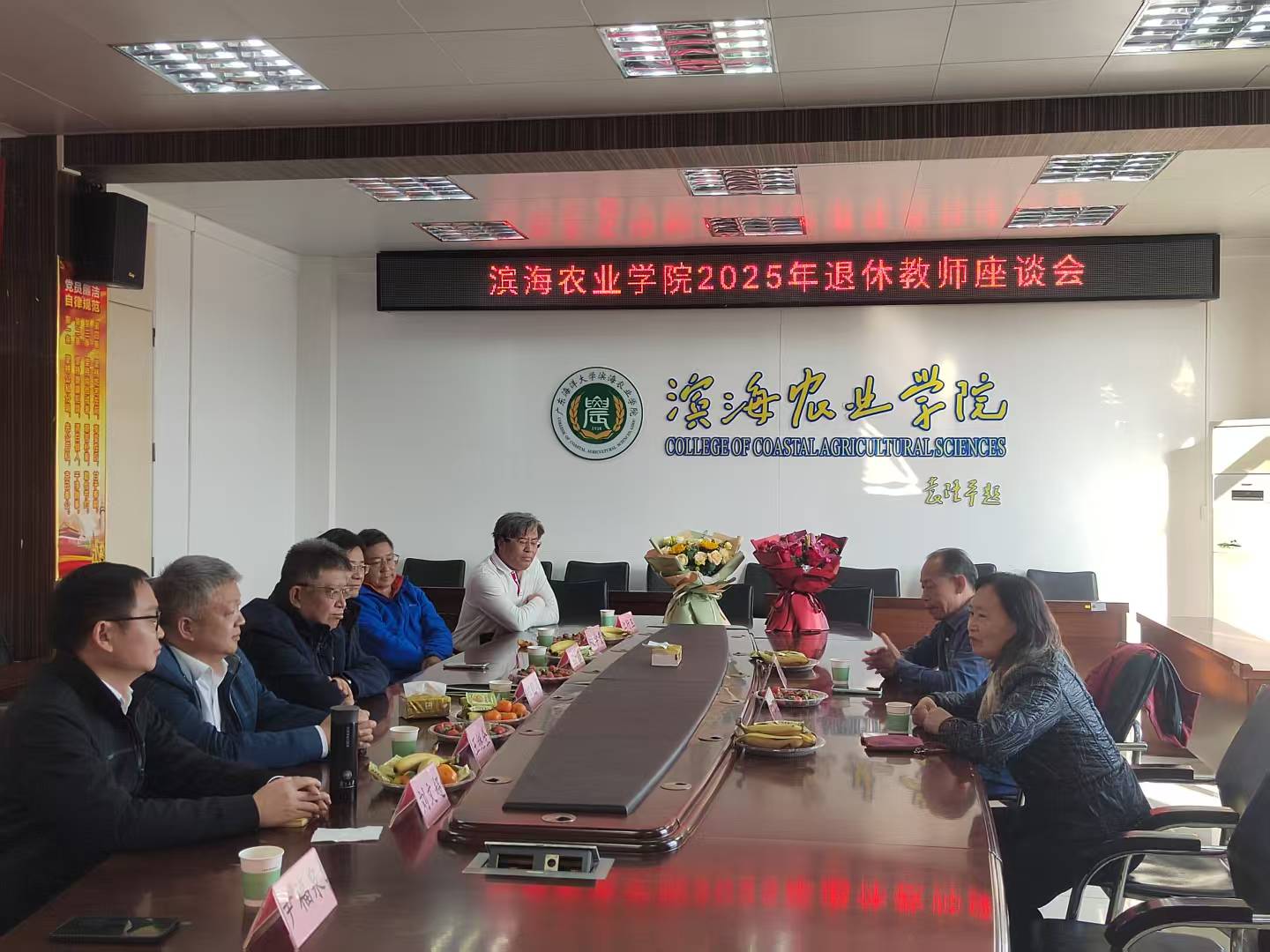 1月9日下午,beat365英国官网网站在兴农楼会议室召开2025年度退休教师座谈会,向本年度光荣退休的陈嘉文副书记、王润莲教授、效梅教授、刘月廉教授四位教职工表达崇高敬意与美好祝福。公司党委书记郑殿峰、经理马驿等领导班子成员、相关系主任与退休教师齐聚一堂,共忆执教生涯,畅谈公司发展。