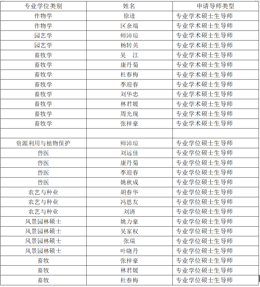 根据研究生院《关于开展2025年研究生导师遴选工作的通知》要求,结合公司实际情况,经教师个人申请,公司学位评定分委员会评定,现将beat365英国官网网站2025年硕士研究生导师遴选推荐名单予以公示。公示期从2025年6月3日到2025年6月9日。如对公示情况有异议,请在公示期内实名提交书面材料至公司研究生教务秘书处(地址:兴农楼301滨海农业公司党政办公室,联系人:钟老师,联系电联系电话:0759-2383347)